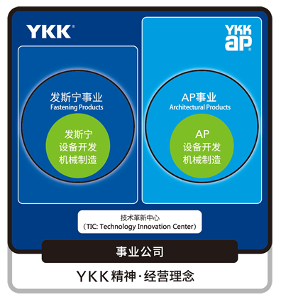 YKK集團(tuán)的全球化經(jīng)營體制是以發(fā)斯寧事業(yè)與AP事業(yè)為核心,開展事業(yè)活動(dòng)。
